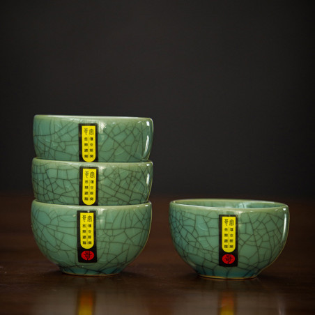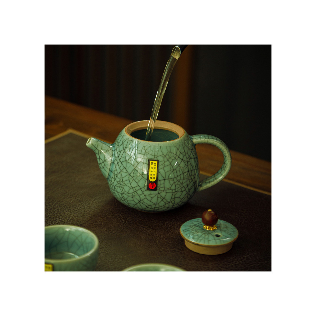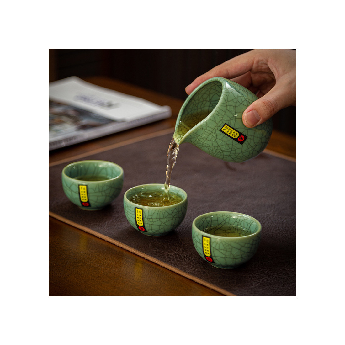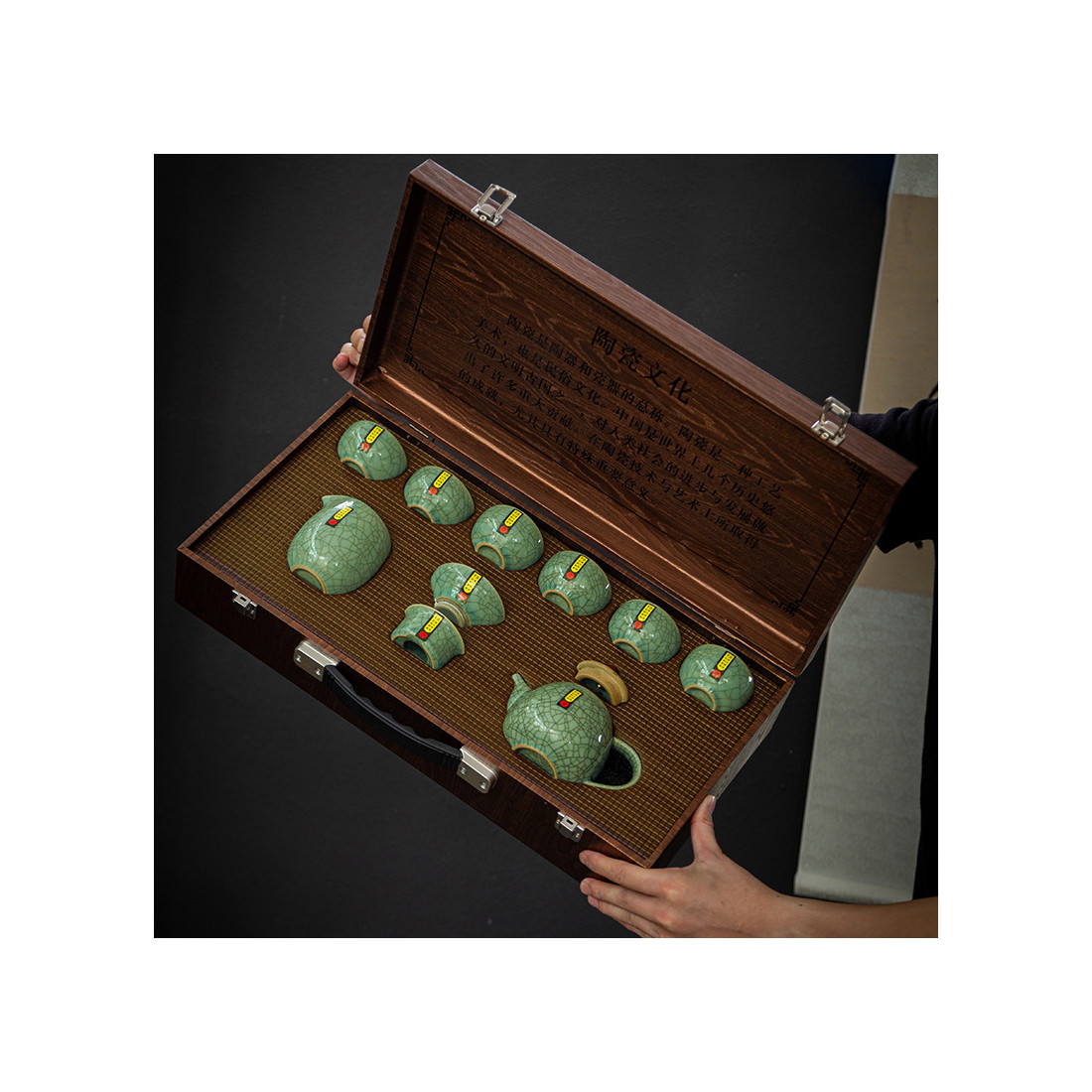 Набір чайного посуду з ґеяо кольору зеленої сливи в чемодані