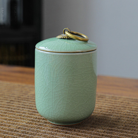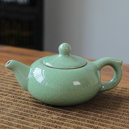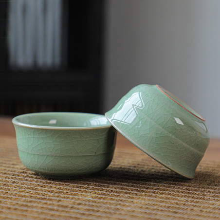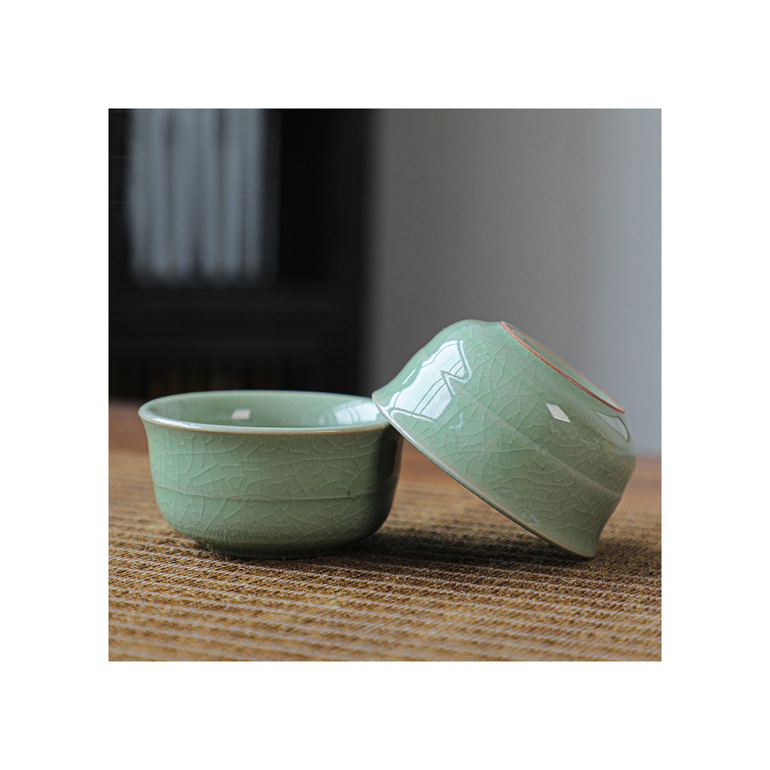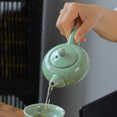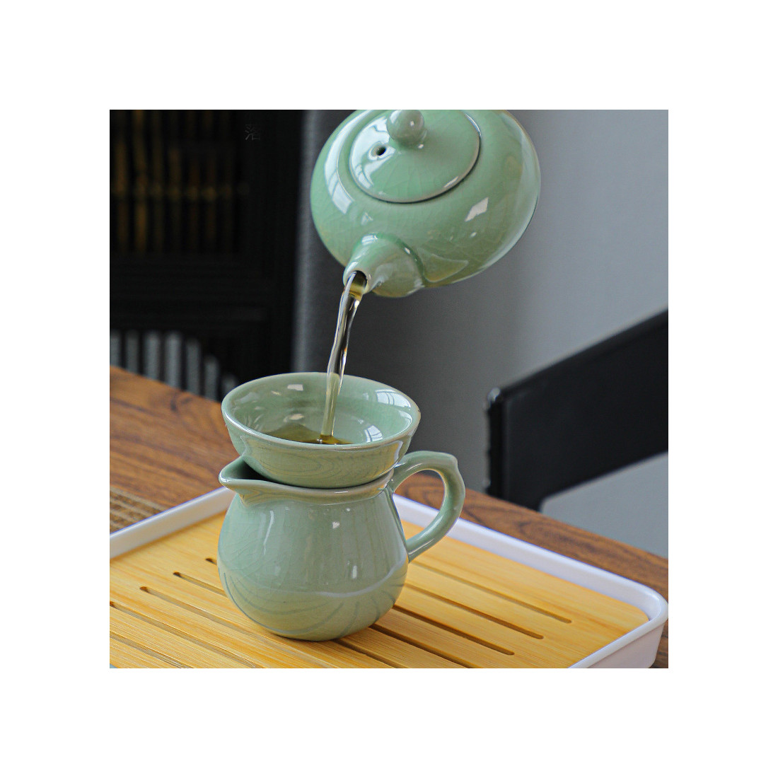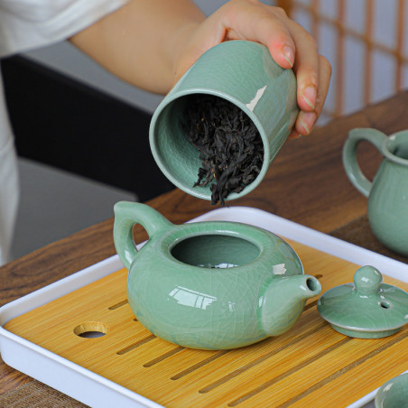 Набір кераміки ґеяо зеленого відтінку. У невеликій сумці міститься все, що необхідно для чаювання.