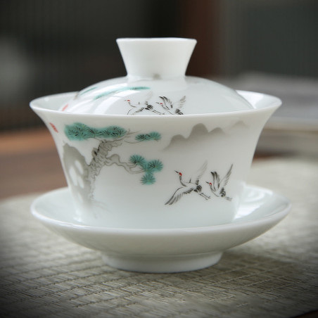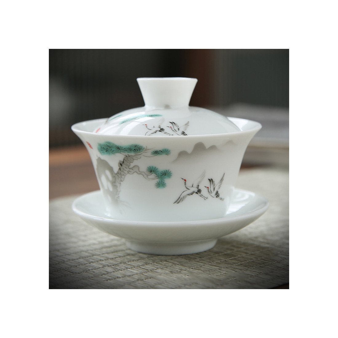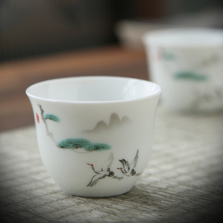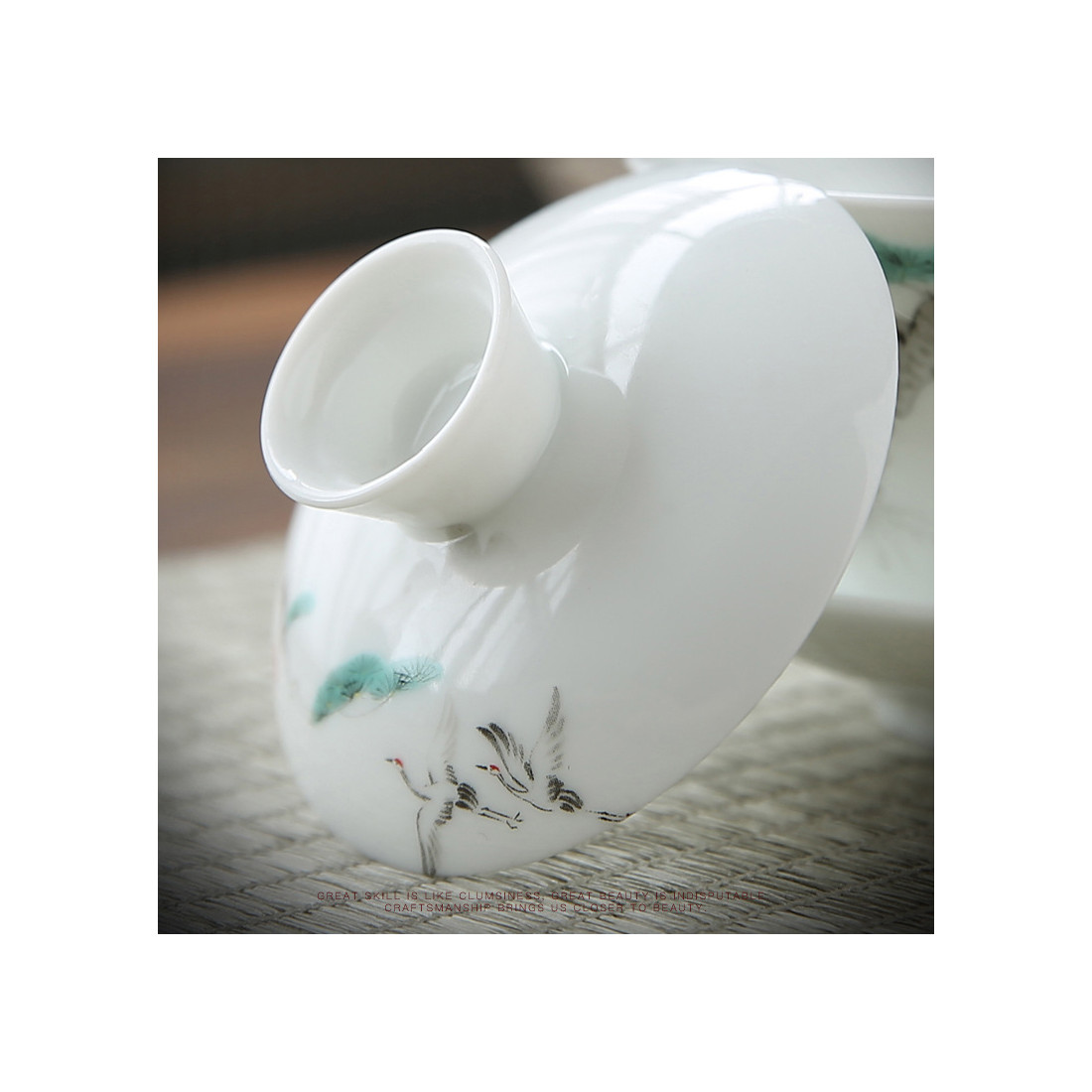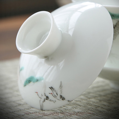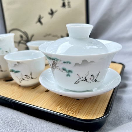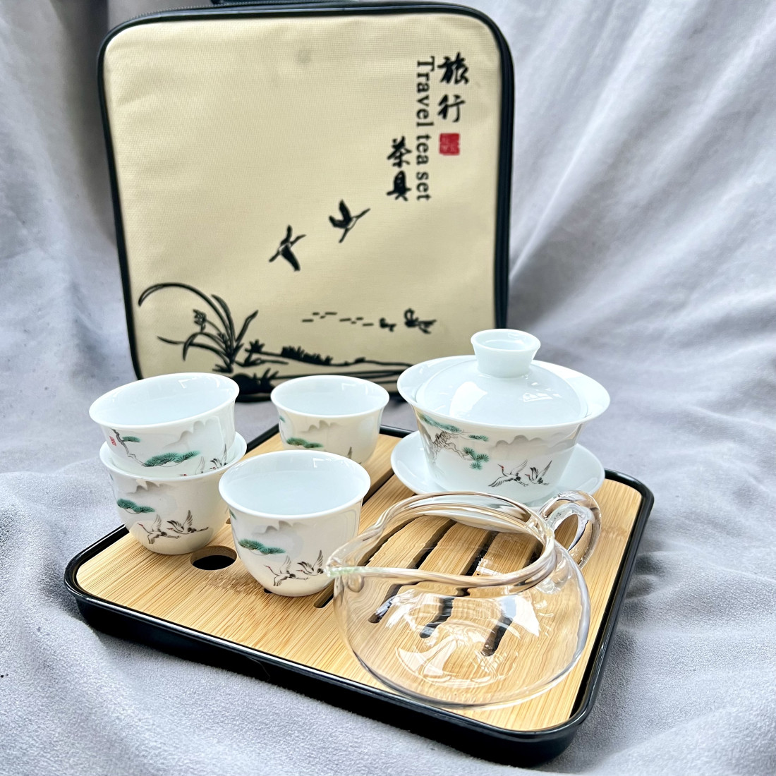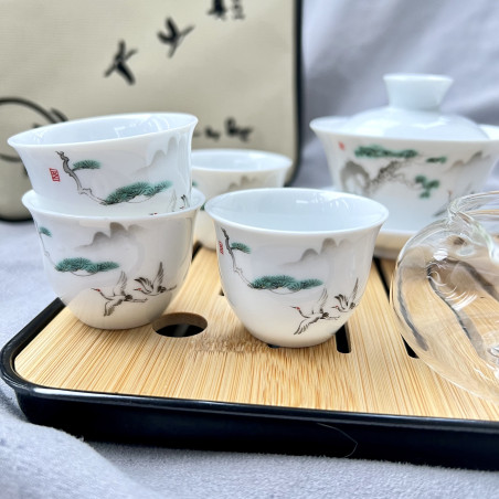 Журавль у хмарах – фарфоровий набір для подорожей з гайванню та скляним чахаєм