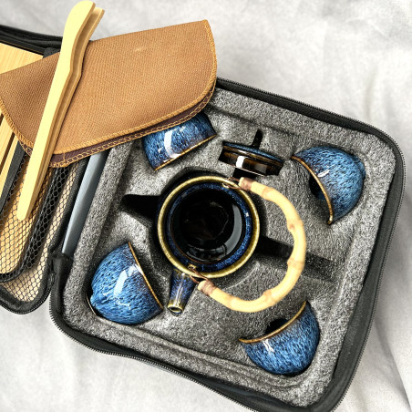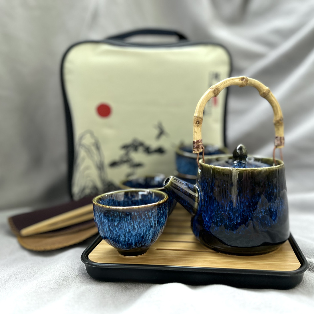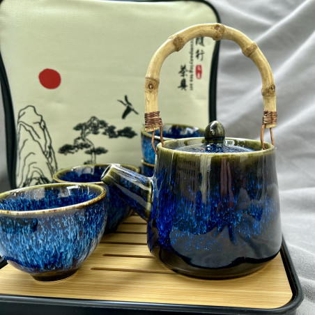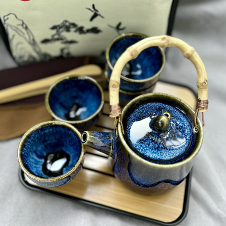 У набір входять: сумка, чабань 19*19 см, рушник та дерев'яні щипці, чайник (315 мл) з незнімною бамбуковою ручкою та 4 чаші (60 мл).