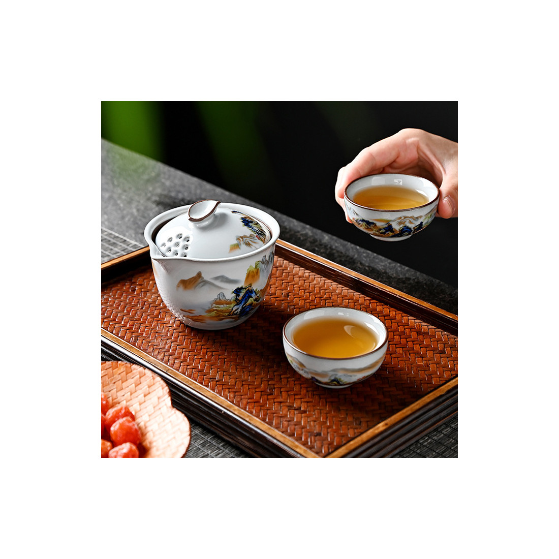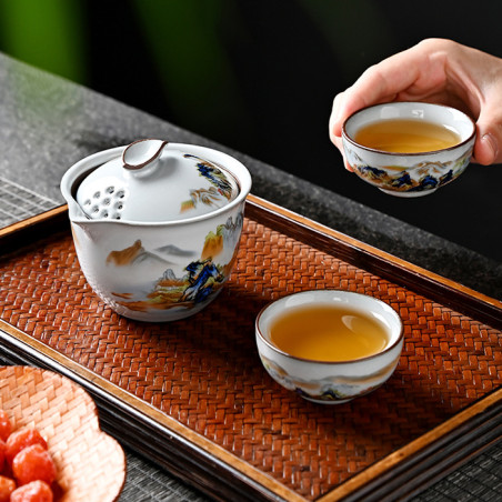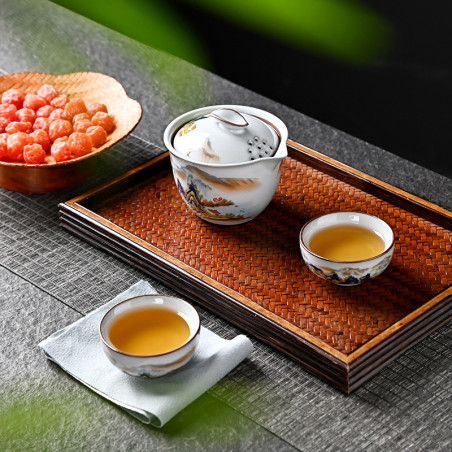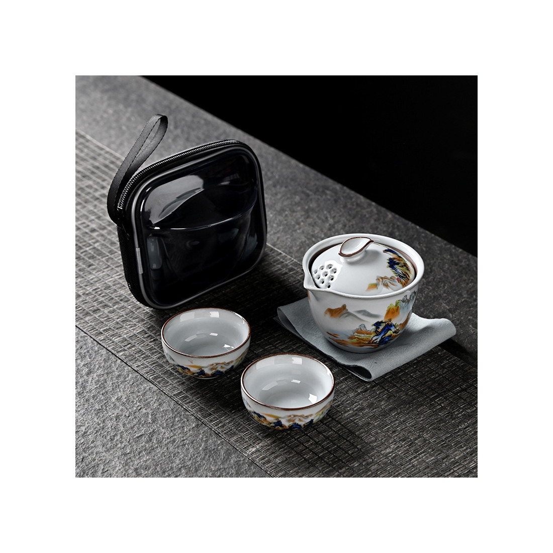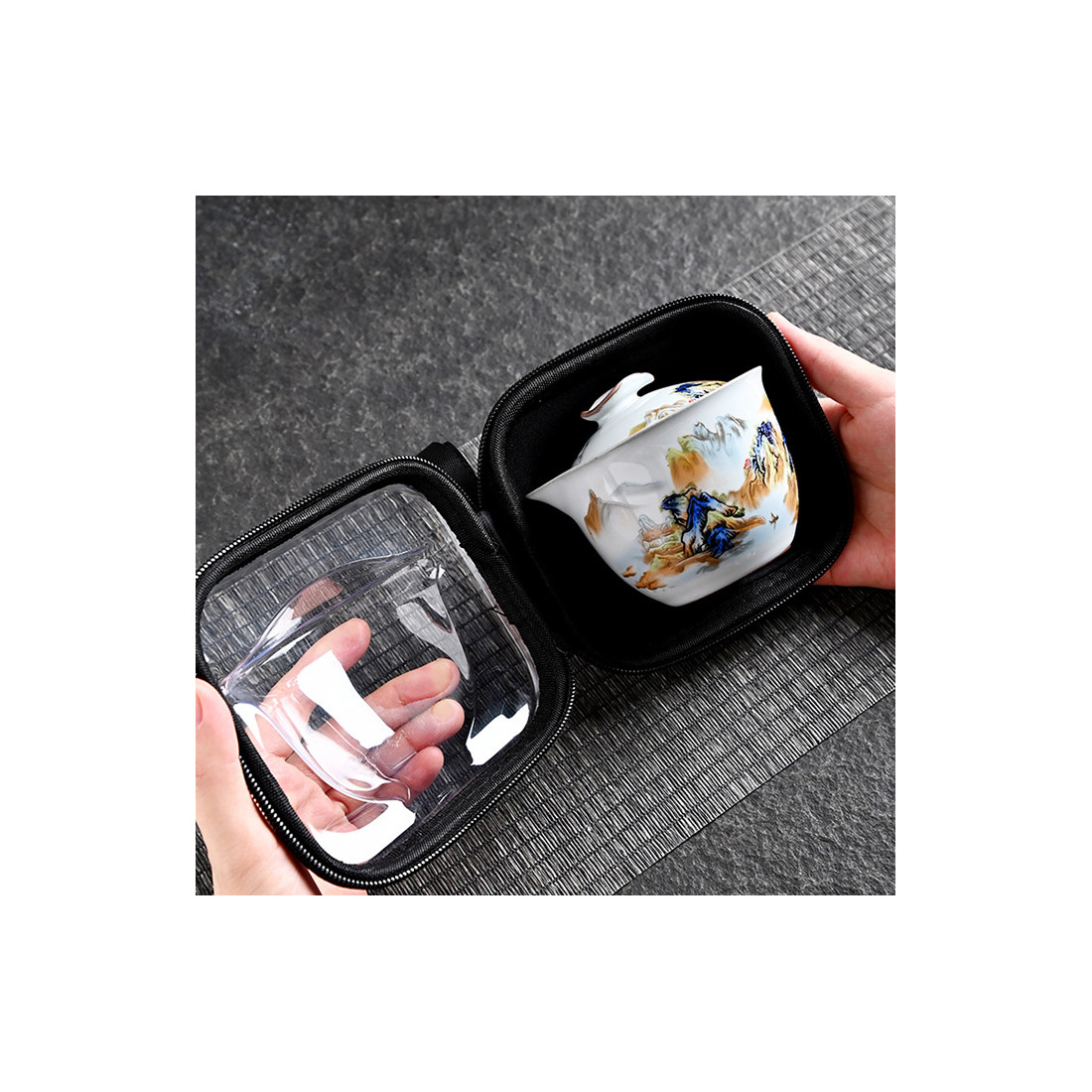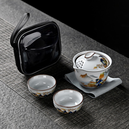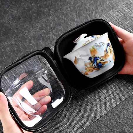 У сумці містяться: чайник-гайвань (190 мл), 3 чаші (корисний об'єм — 40 мл, повний — 60 мл), рушник.