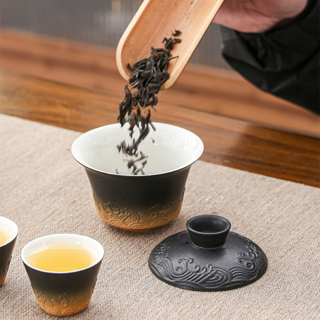 У сумці містяться: гайвань — 150 мл, чахай — 250 мл, 2 чаші (корисний об'єм — 30 мл, повний — 40 мл), рушник.