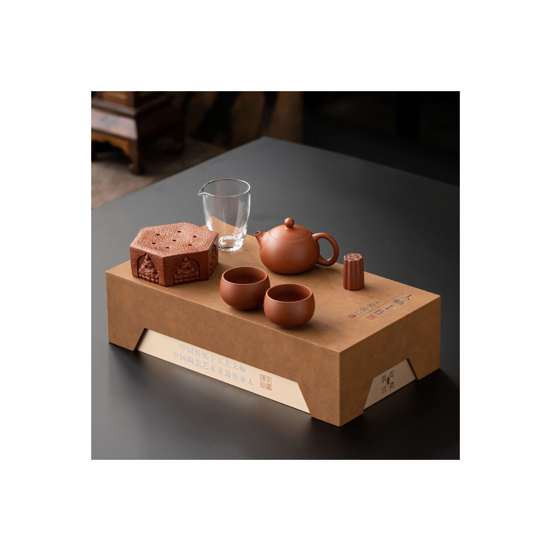 Набір створений майстром прикладного мистецтва Китаю Сюй Жуйжунем. Продається в подарунковій коробці та пакеті. Кришка коробки може бути використана як своєрідний столик. До набору додається паспорт майстра.
