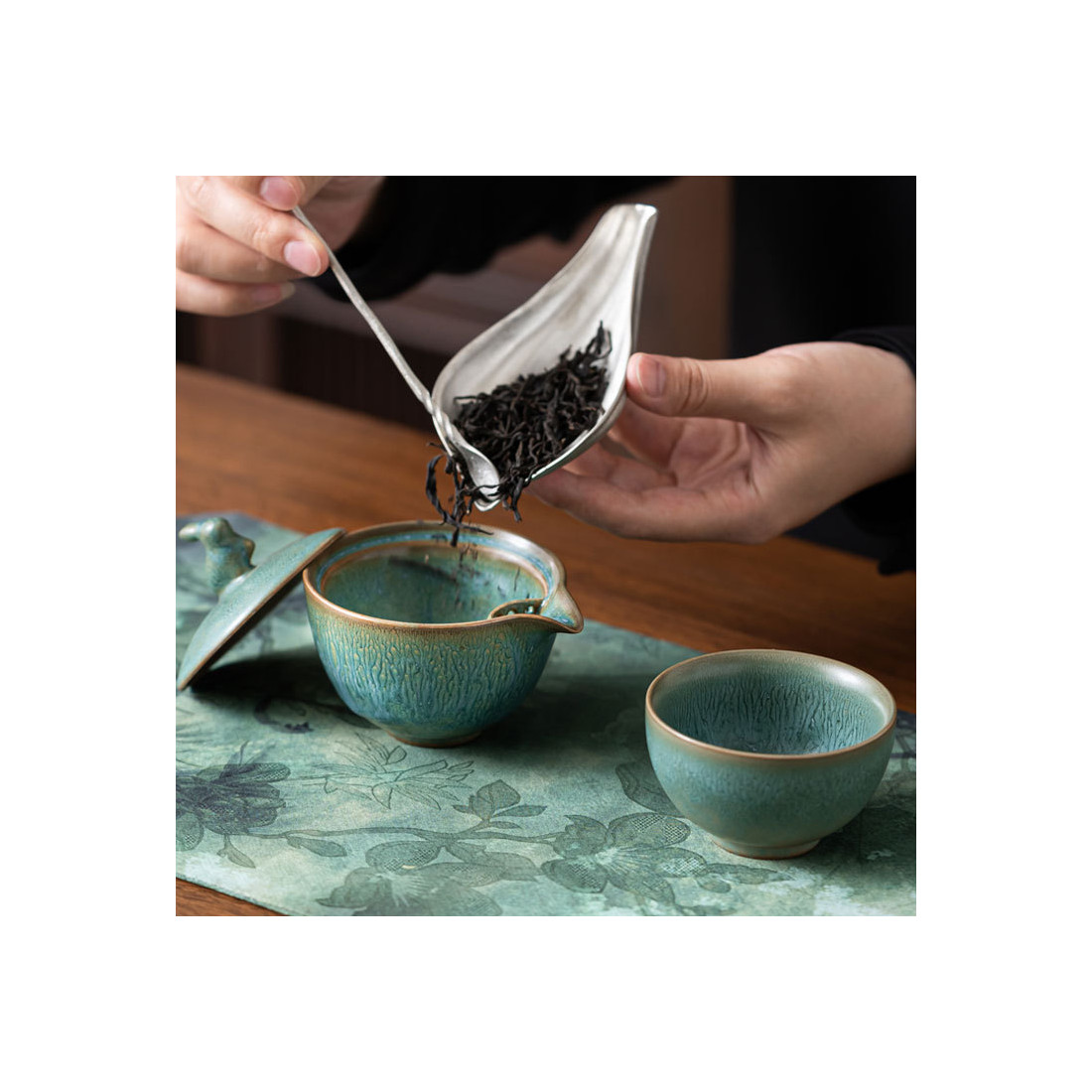 У коробі містяться: чайник-гайвань (90 мл), 1 чаша (корисний об'єм — 70 мл, повний — 90 мл), рушник.
