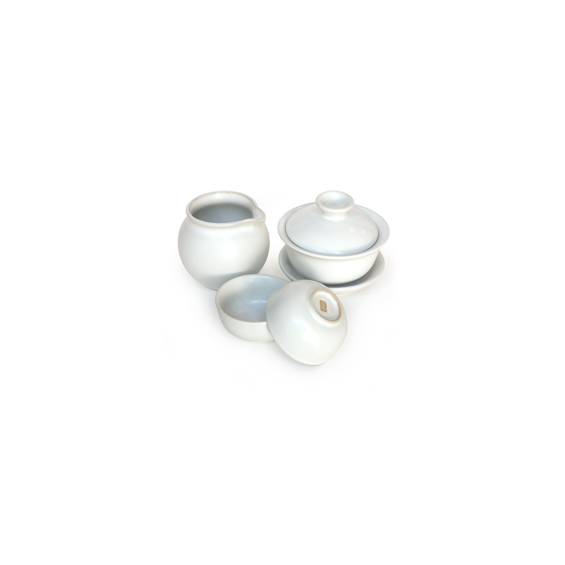 Сервіз для чаювання виконаний з кераміки жу яо кольору білого місяця (юебай, 月白), тобто сріблясто-блакитного відтінку. Класична кераміка без малюнка.