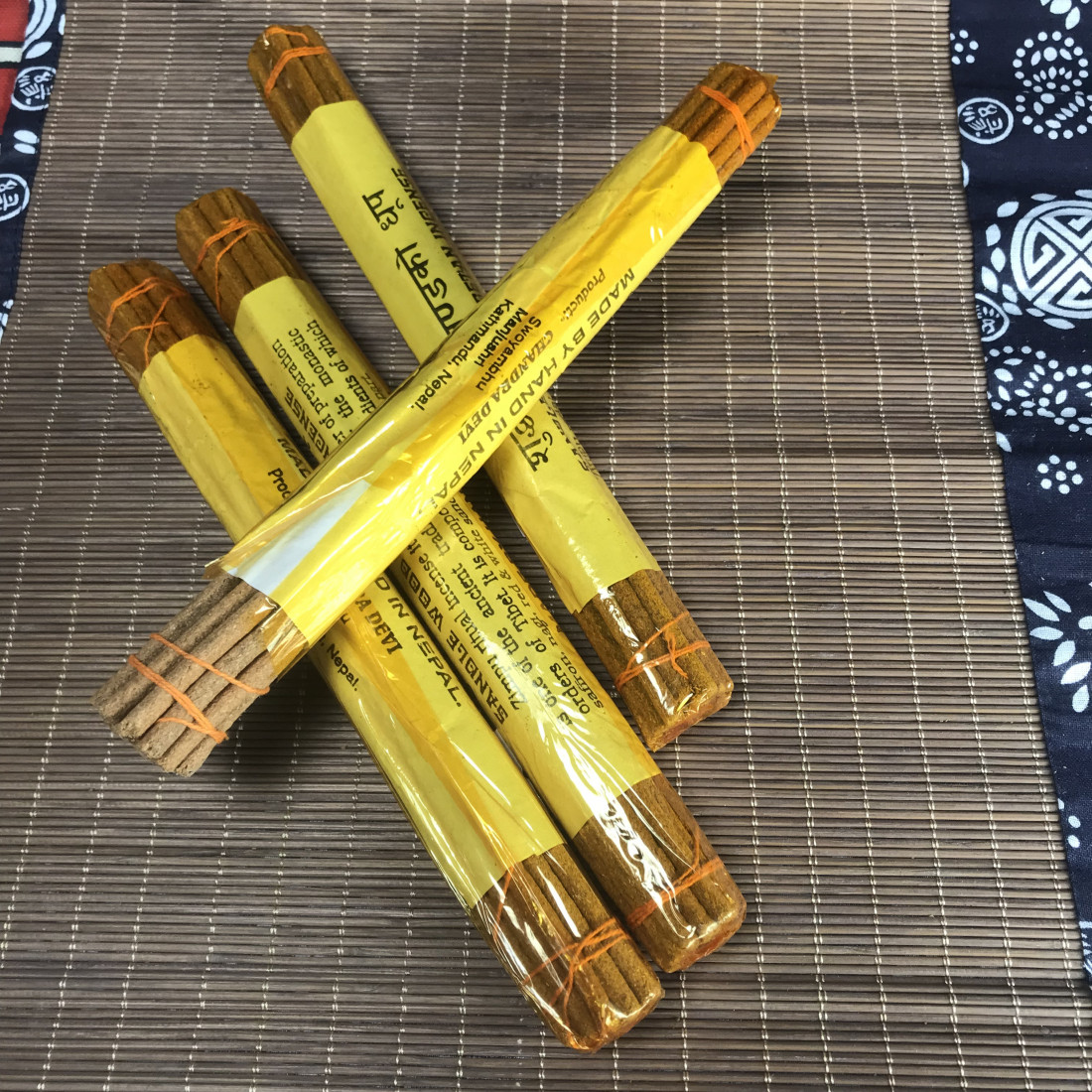 Ритуальні пахощі з тибетським сандалом. У рецепт входять близько 25 рослин, серед них шафран, червоний та білий сандал, голі.