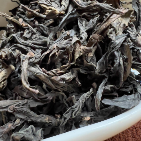 Відчувається міць чаю зі скелі, помірна різкість смаку і терпкість не сильно ферментованого листа.
