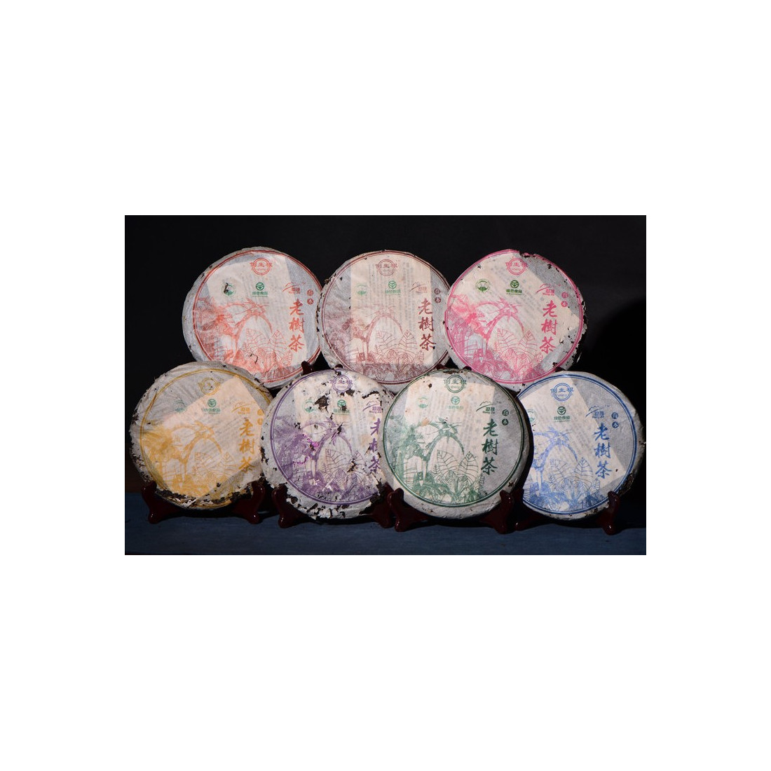 Виготовлений із сировини великих старих дерев, що виростають на території племені дайців, відповідно до їх чайних традицій. Обгортки різнокольорові, але чай у них той самий.