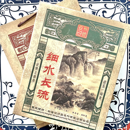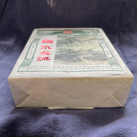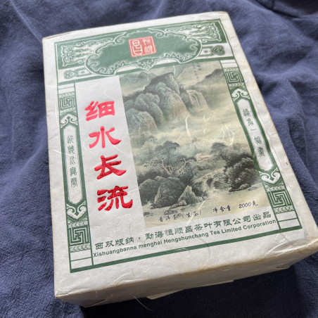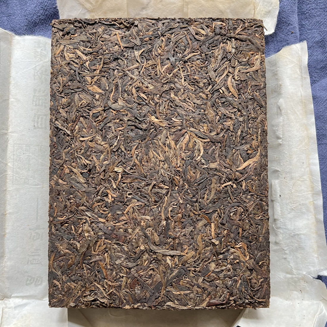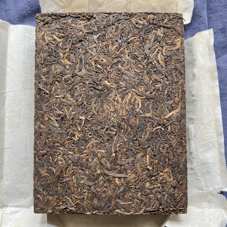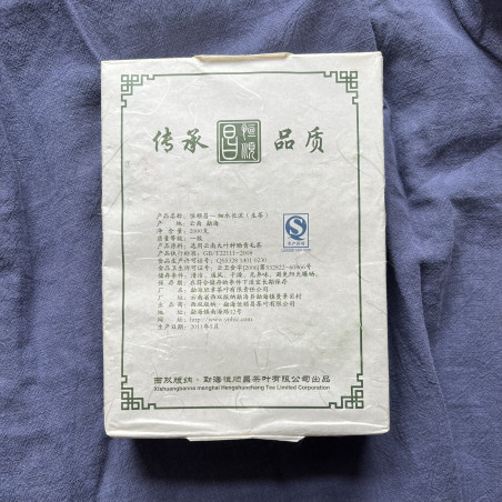 Пуер спресований у плитки по 2 кг, сировина дуже хороша, що видно і в сухому чаї, і в спитому. Після витримки більше 10 років сухий чай у плитці вже набув коричнево-золотистого кольору, при цьому колір настою досить світлий.