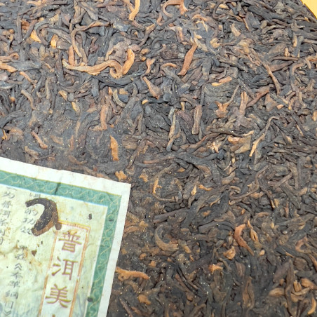 На вигляд млинця помітно, що шу пуер повний ворсистих бруньок. Витримка близько 15 років та ніжні пагони дарують м'який та ніжний настій, хоча за кольором помітно, що насиченість заварки хороша. Чай зберігався на сухому складі, тому аромату витримки немає. Настій за відчуттям гладкий та округлий. У смаку горіхово-деревні ноти та трохи трав'янистості.