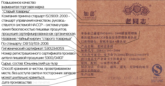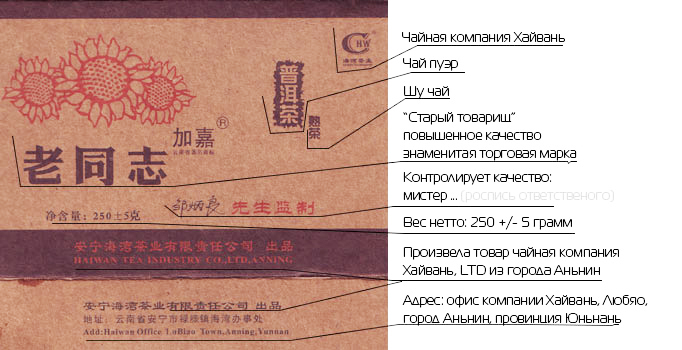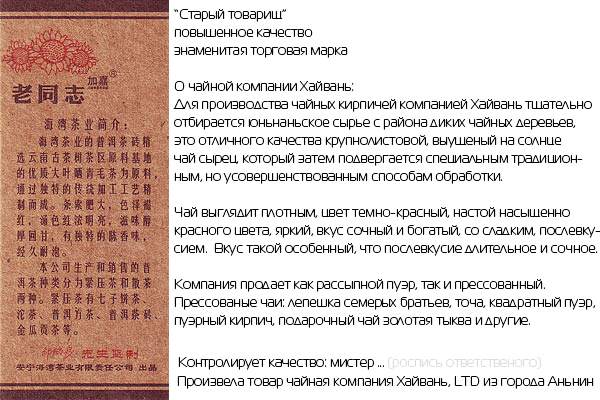 - Чайна компанія Хайвань, бренд "Старий товариш"