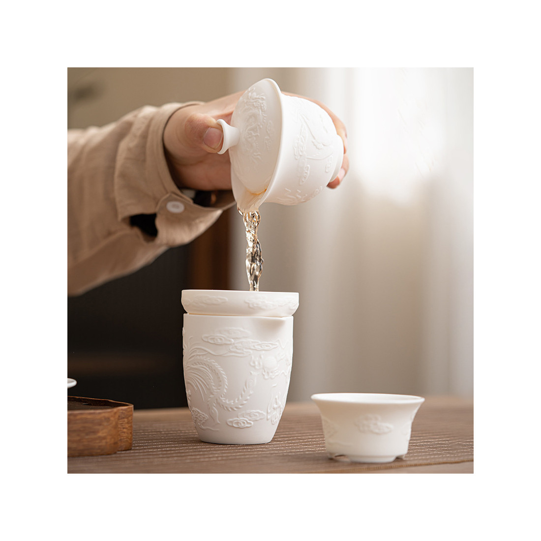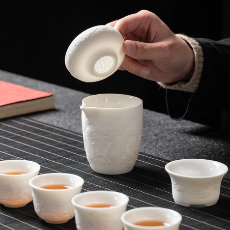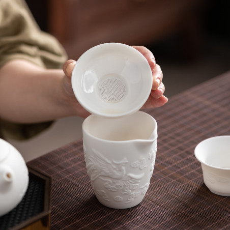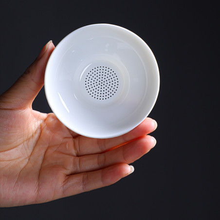 Сито з підставкою з фарфору кольору білого нефриту (羊脂玉瓷), відомого з часів імперії Мін (17 в.). Відмінність цієї порцеляни в тому, що вона не холодного, а теплого відтінку.