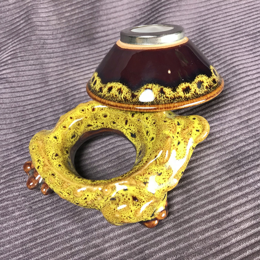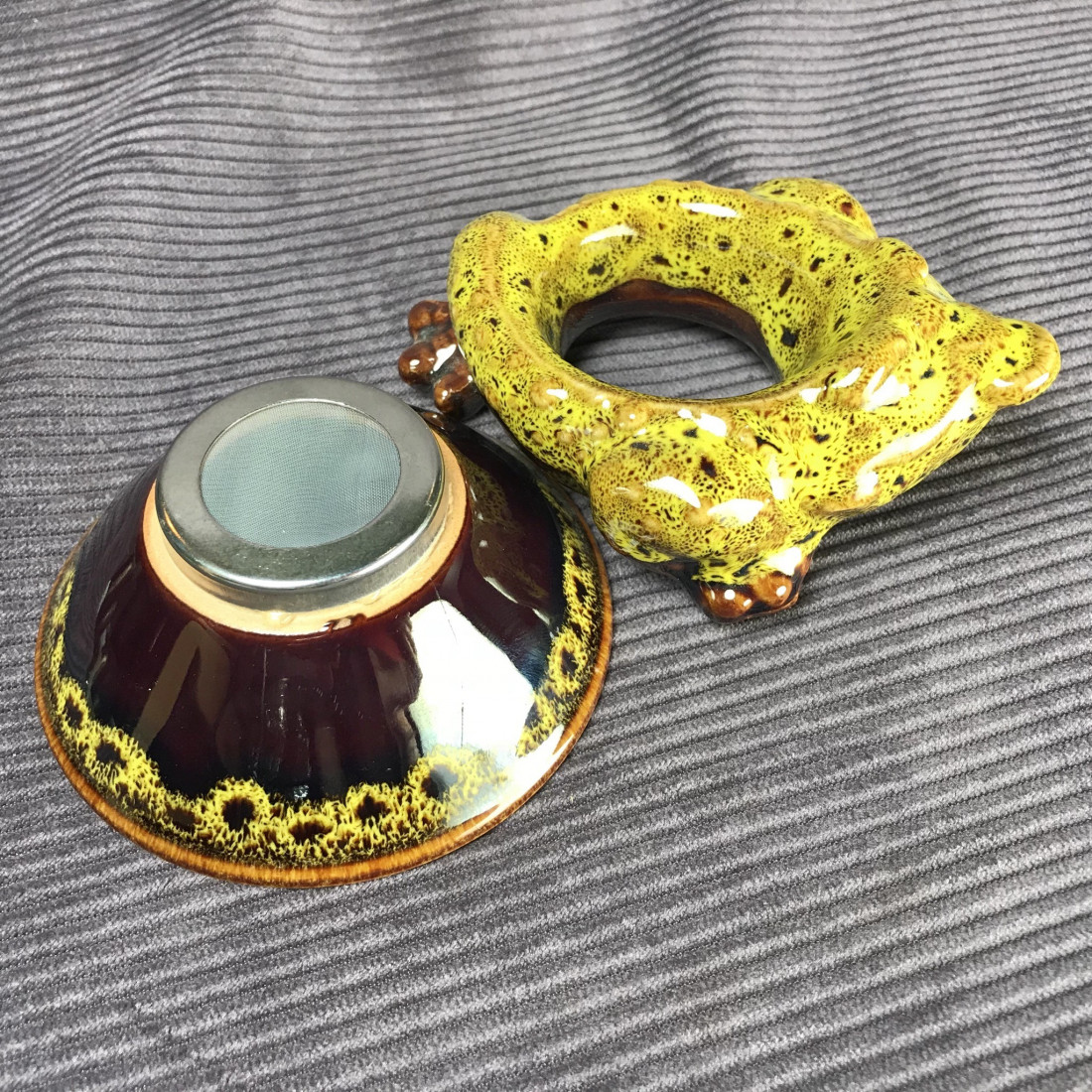 Ситечко з підставкою у вигляді трилапої жаби. Саме ситечко шовкове із залізним ободом.