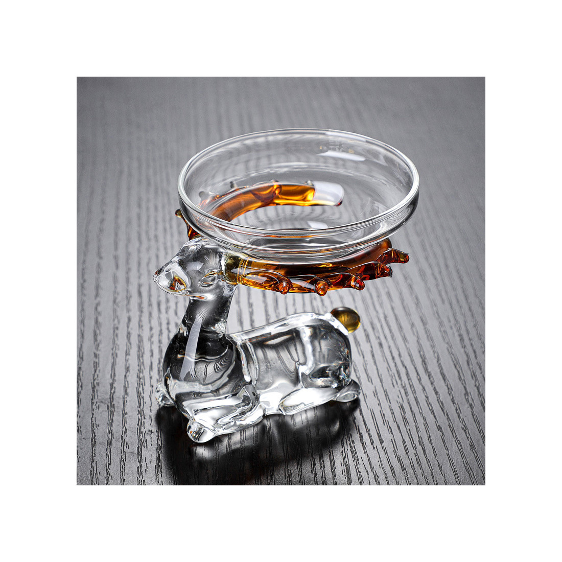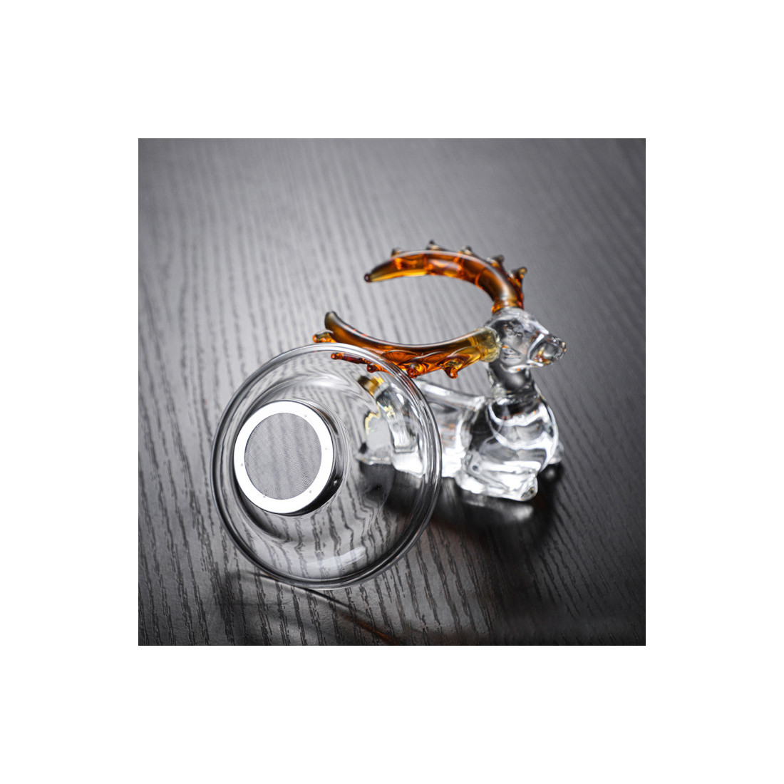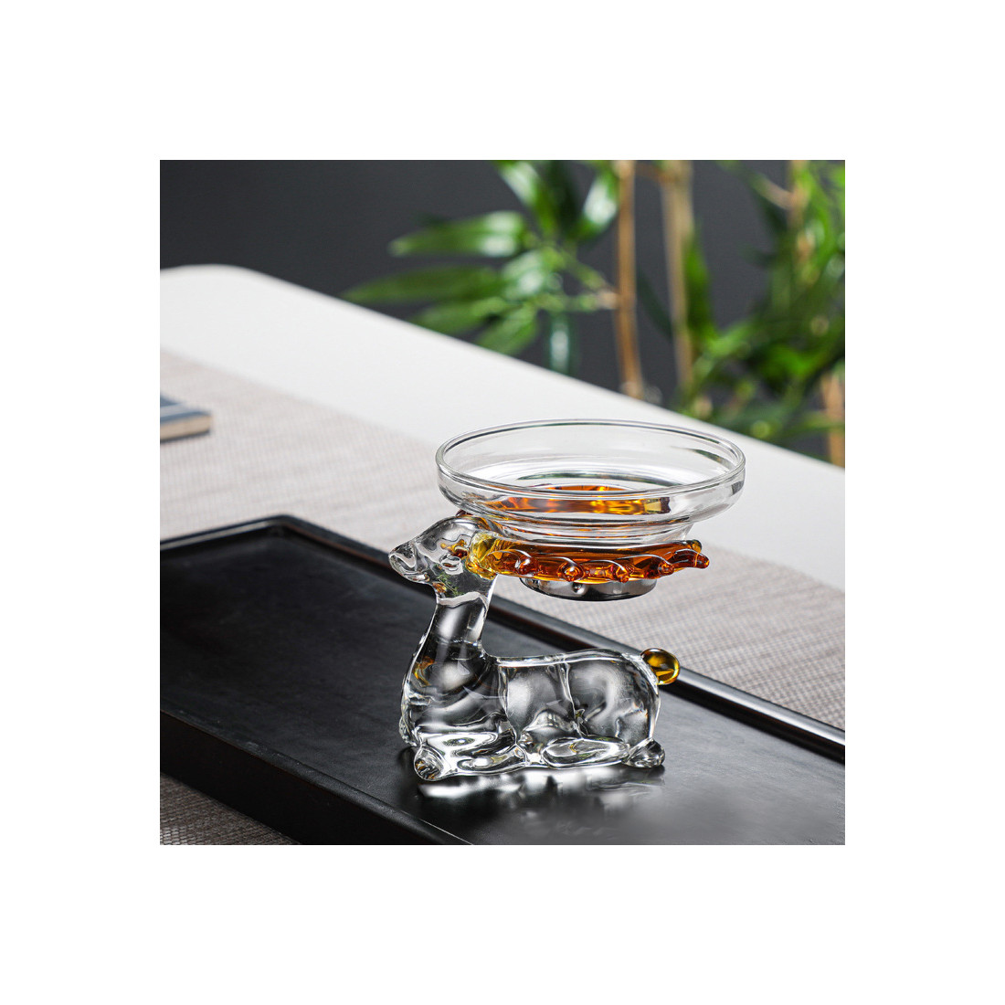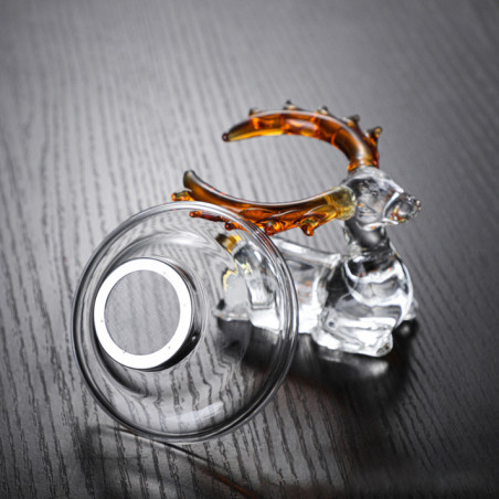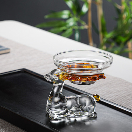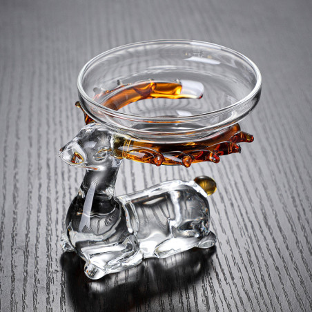 Скляне сито з підставкою у формі оленя. Саме сито, що фільтрує, — метал.