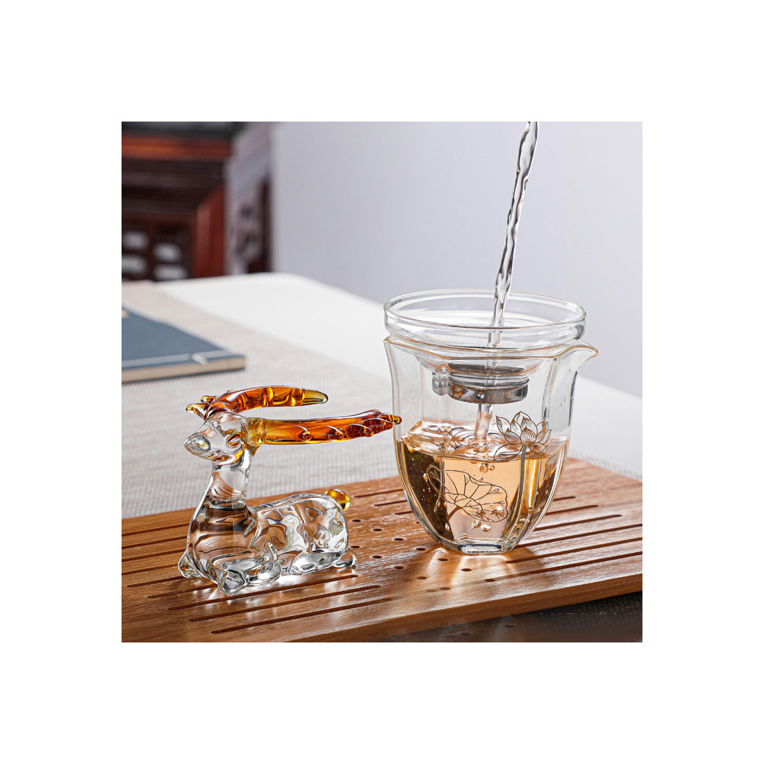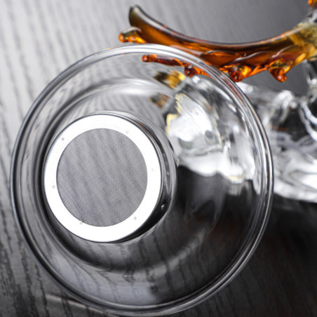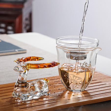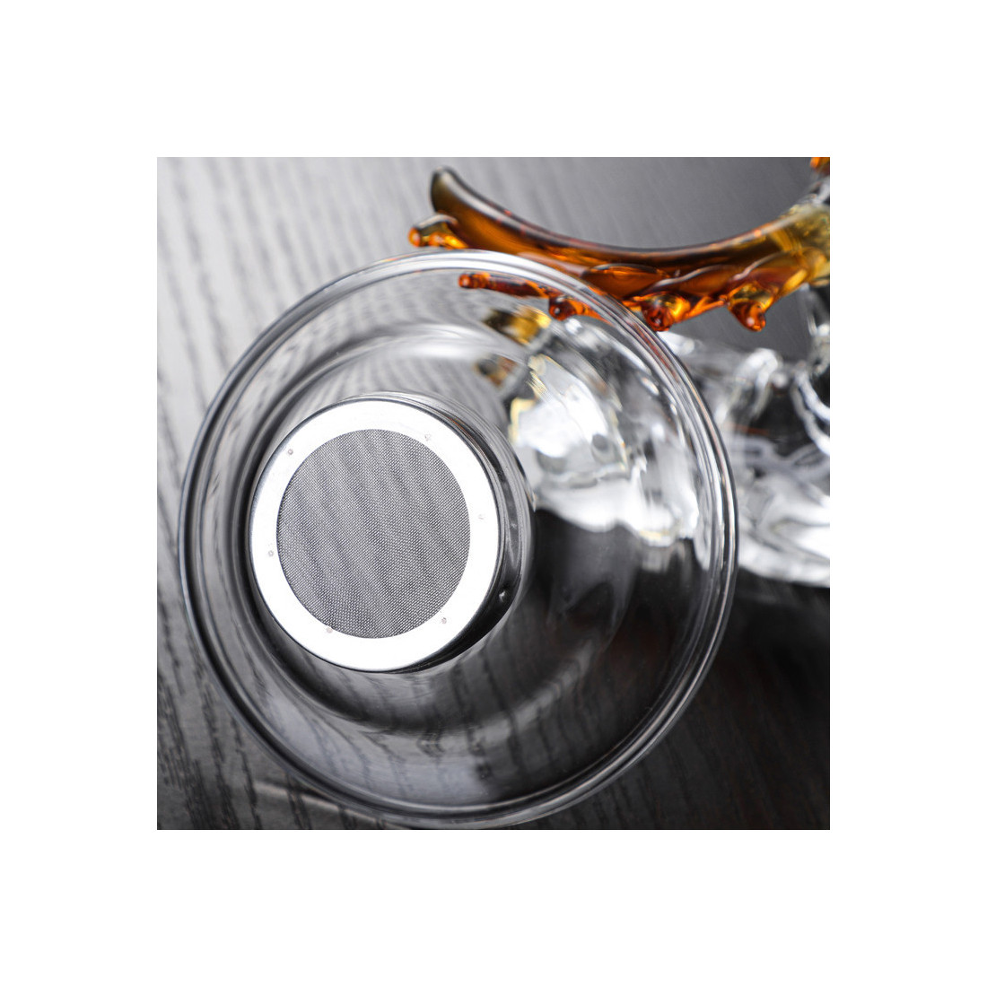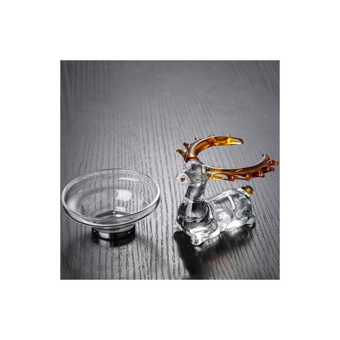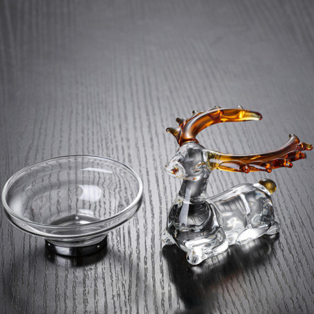Скляне сито з підставкою у формі оленя. Саме сито, що фільтрує, — метал.