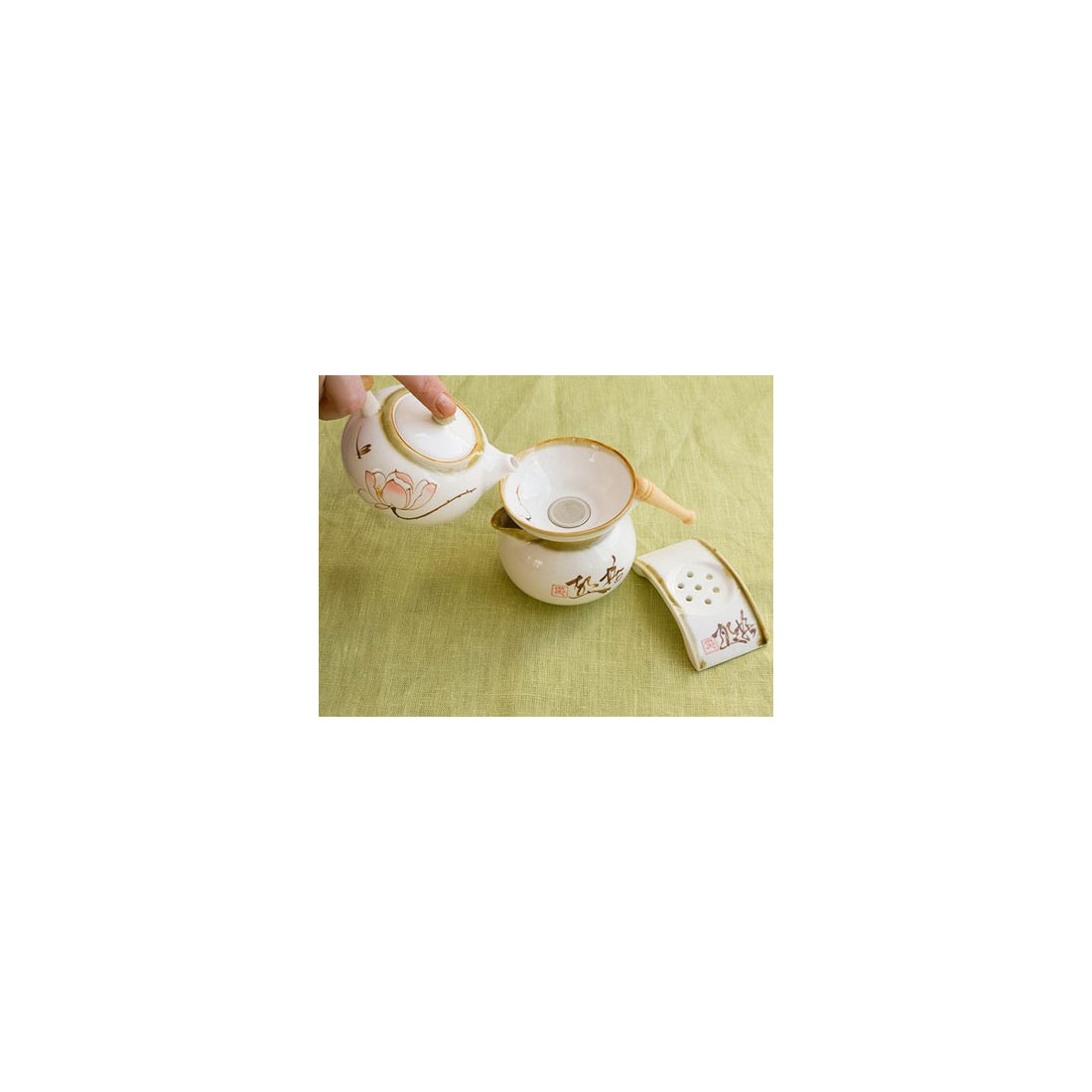 Посуд із прекрасної повітряної порцеляни, прозорої та легкої. Витончені предмети в ньому порадують найвибагливіших цінителів справжньої китайської порцеляни. Такий витончений посуд підходить для заварювання зеленого, білого чаю, а також світлих улунів. Тегуаньінь і скручені тайванські улуни чудово розкриються в цій формі чайника і порадують вас чудовим смаком.