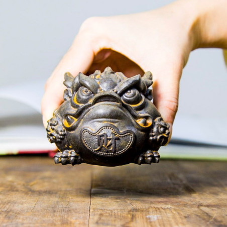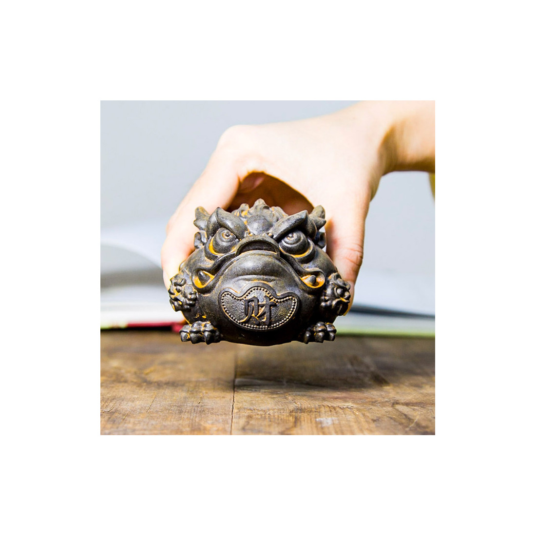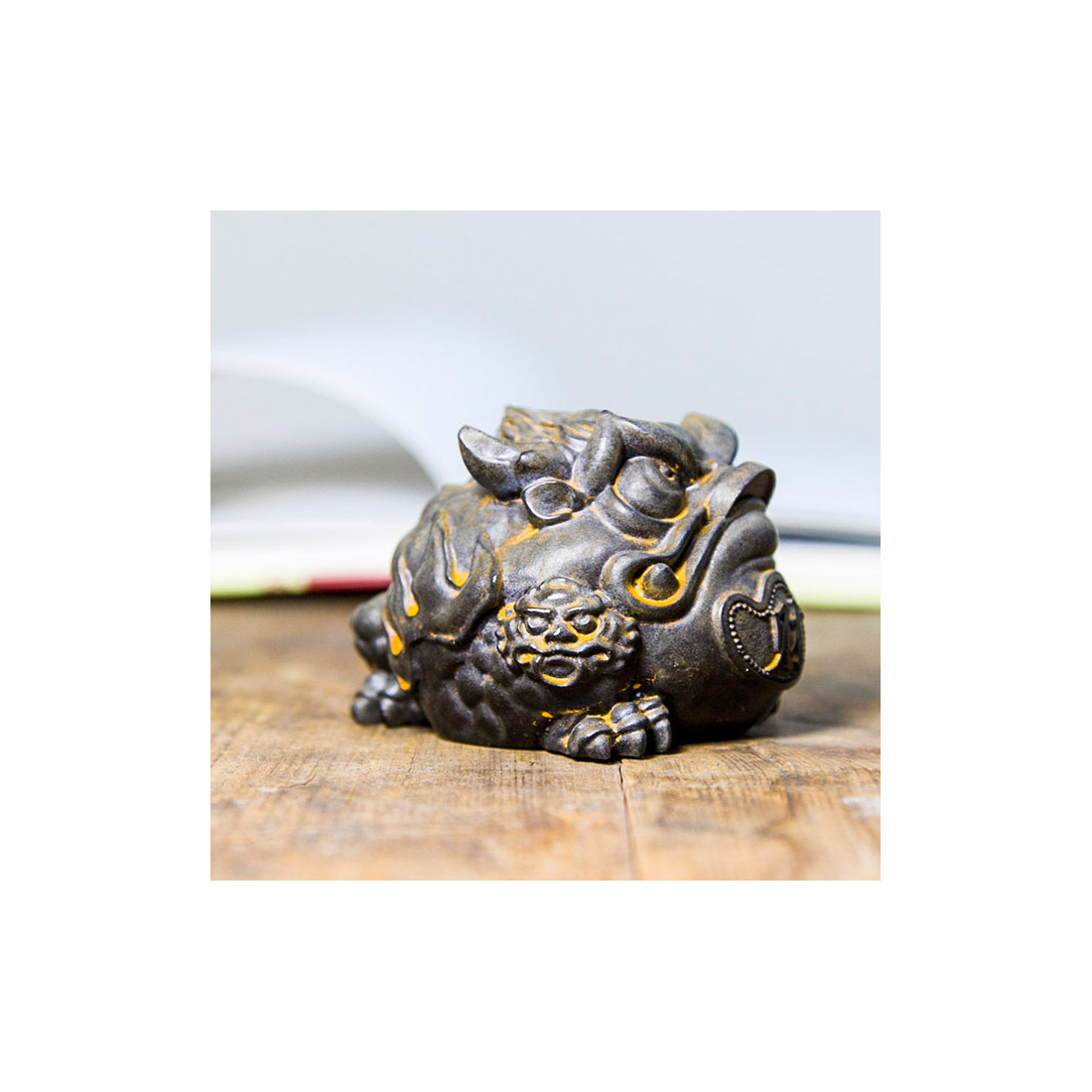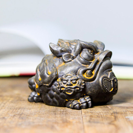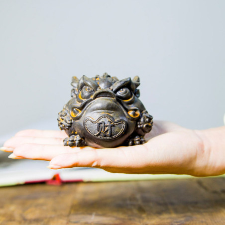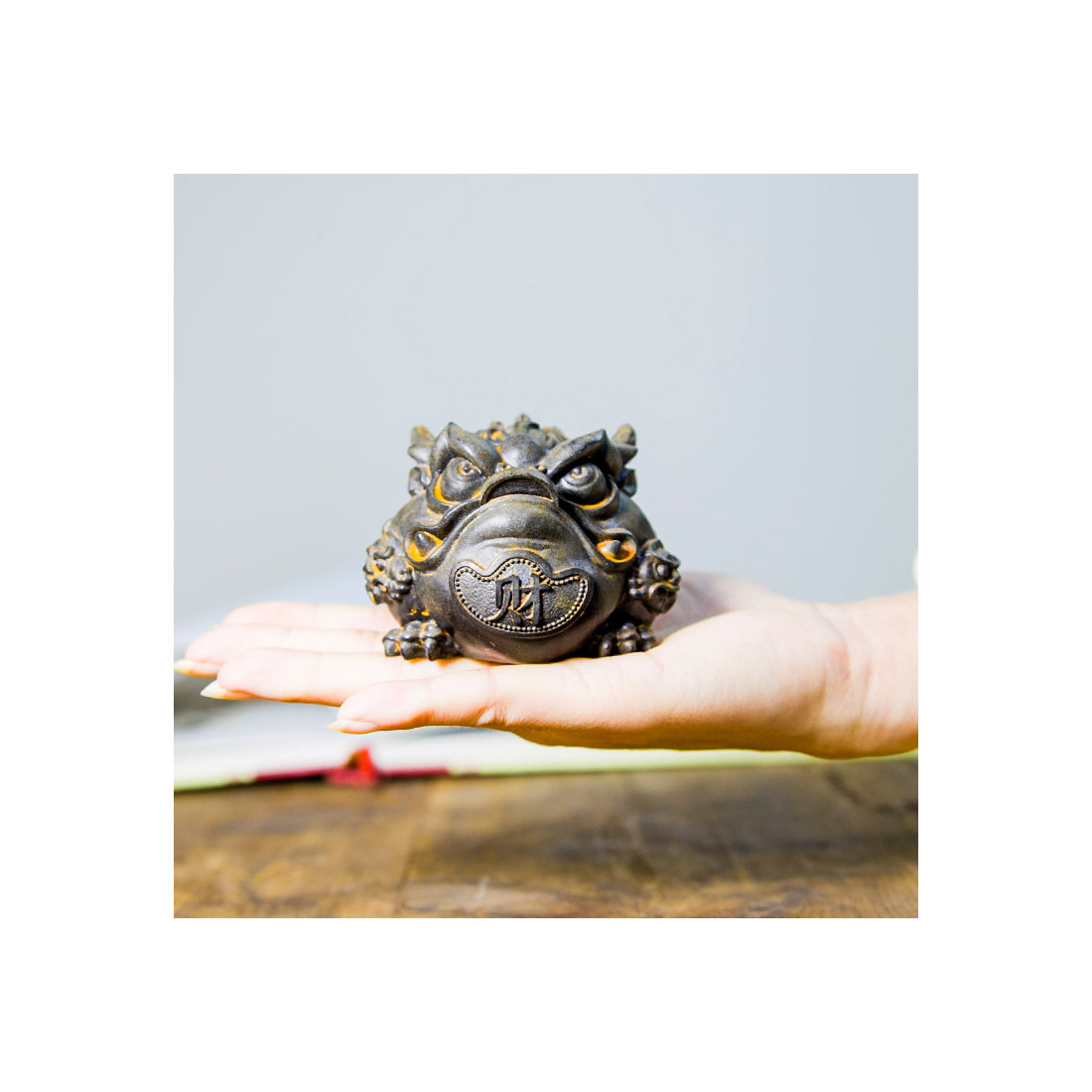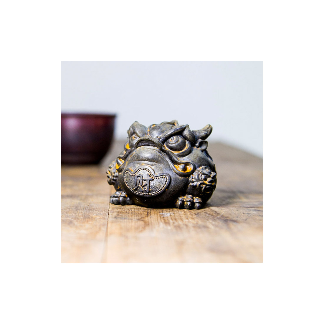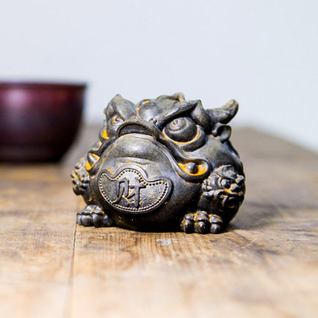 Статуетка у вигляді трилапої жаби — символу багатства. На грудях ієрогліф цай — багатство.