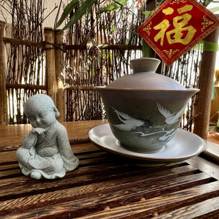Статуетка виготовлена із пісковика. Якщо поливати чаєм, почне ставати темніше та фактурніше. Для правильного розподілу чаю, особливо по складочкам, можна купити пензель.