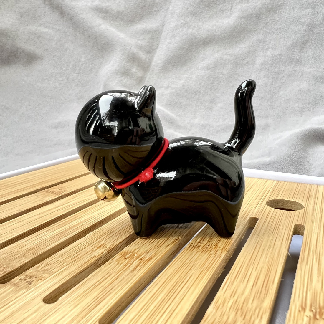 Чайна статуетка з кераміки, покрита чорною глазур'ю.