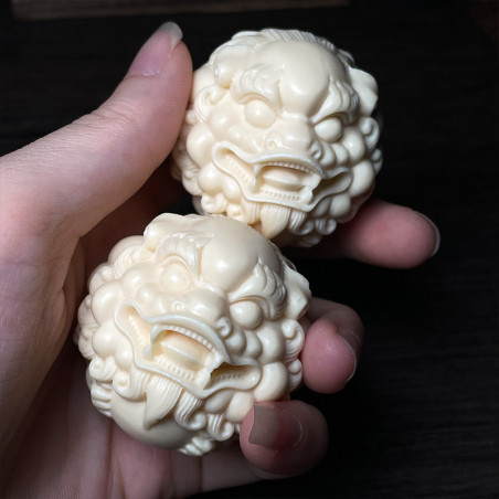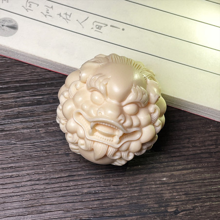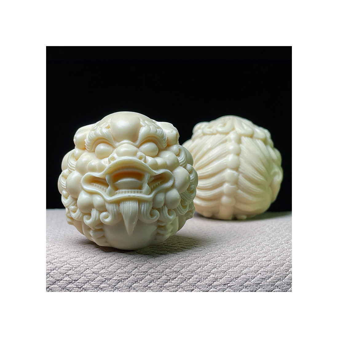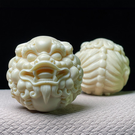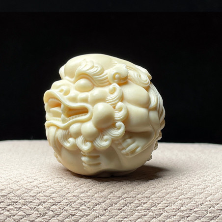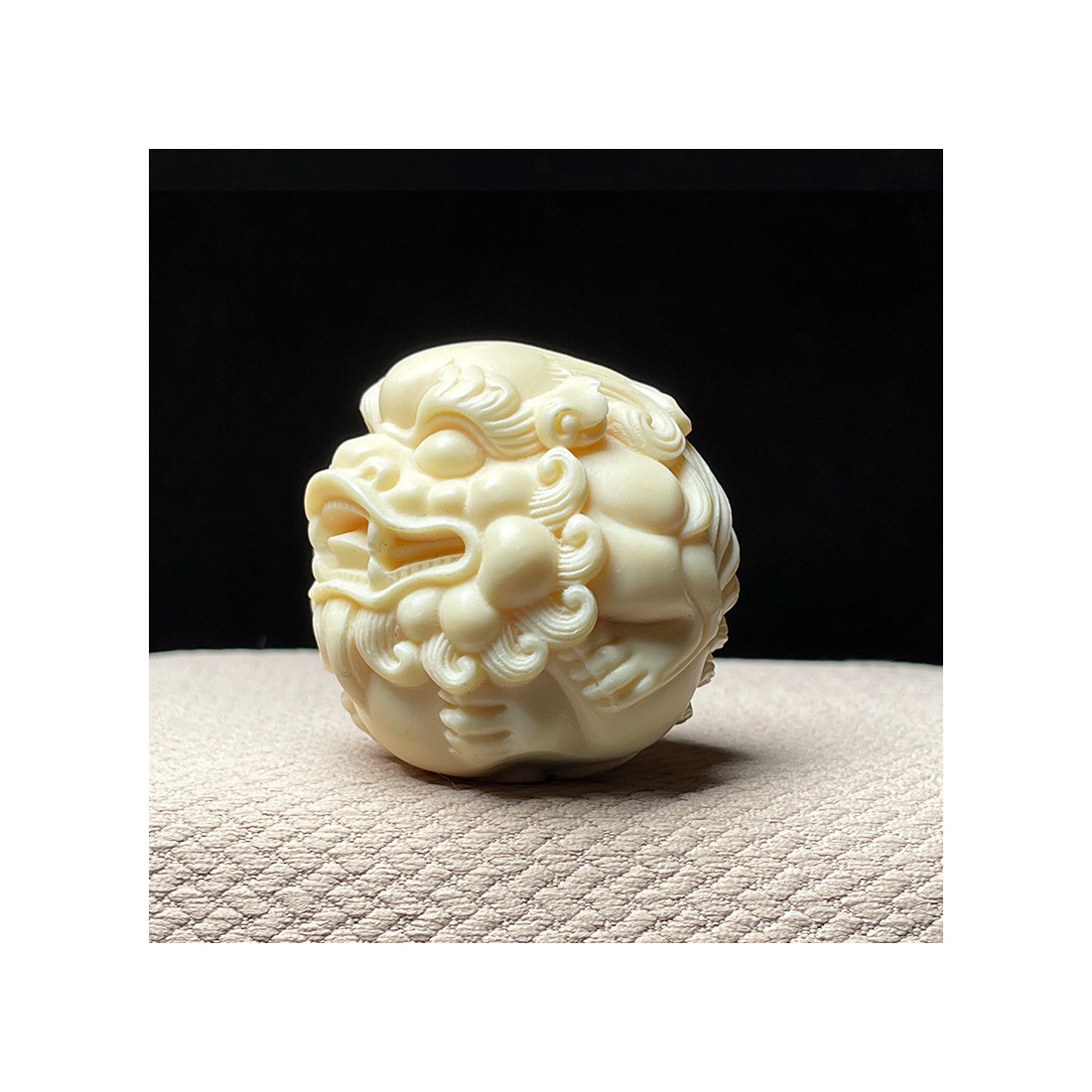 Маленька статуетка вирізана з горіха тагуа, який називають рослинною слоновою кісткою. Горіх теплого білого кольору, щільної структури, що зовні нагадує бивень слона.