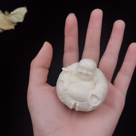 Маленька статуетка вирізана з горіха тагуа, який називають рослинною слоновою кісткою. Горіх теплого білого кольору, щільної структури, що зовні нагадує бивень слона.