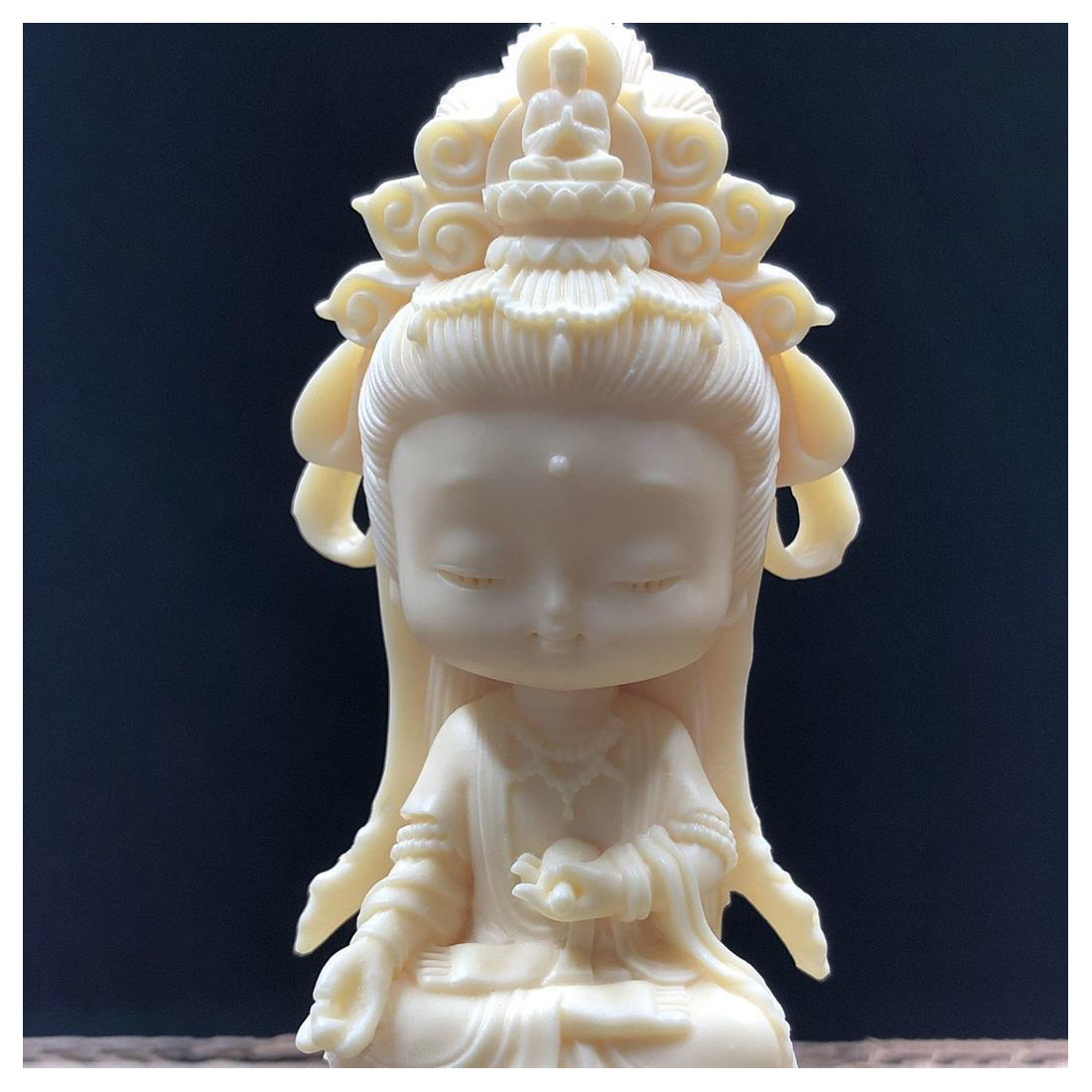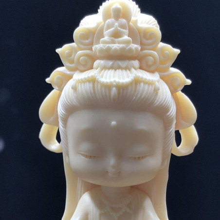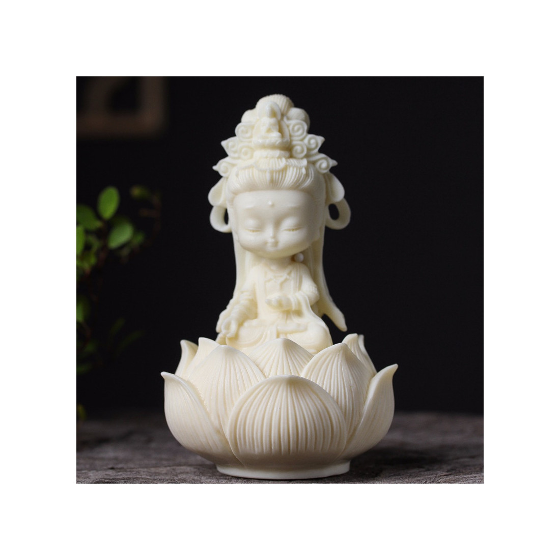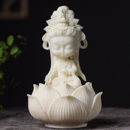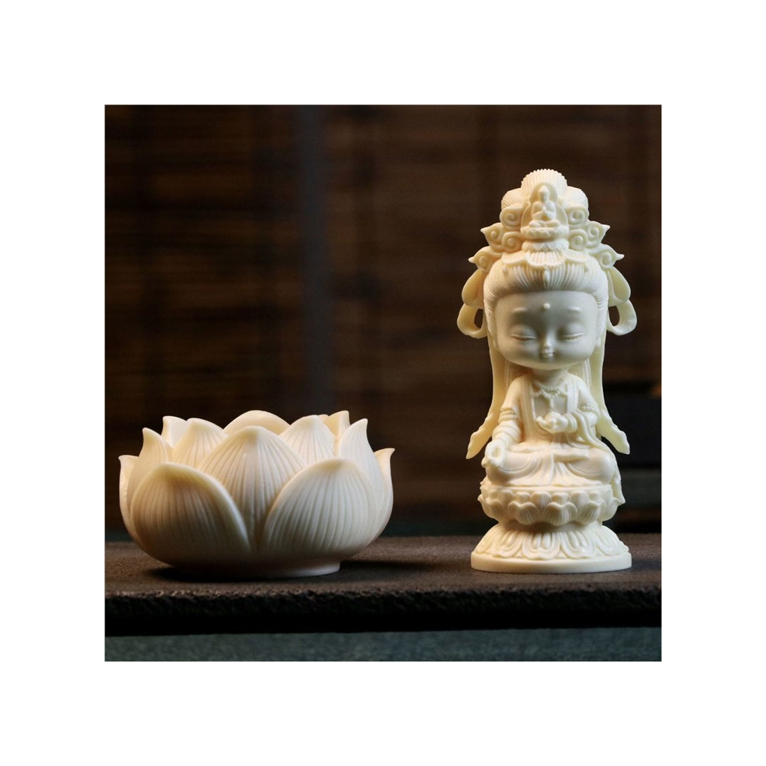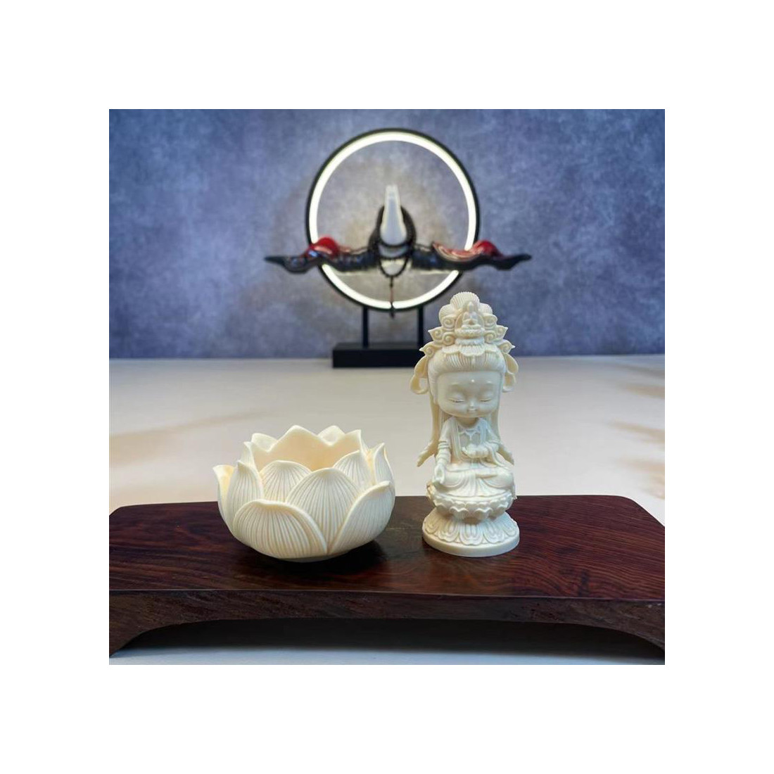 Богиня Ґуаньїнь зі свічником у формі лотоса — статуетка з горіха