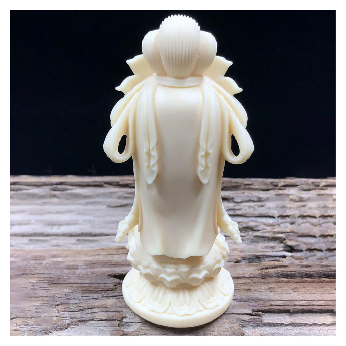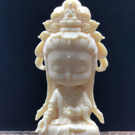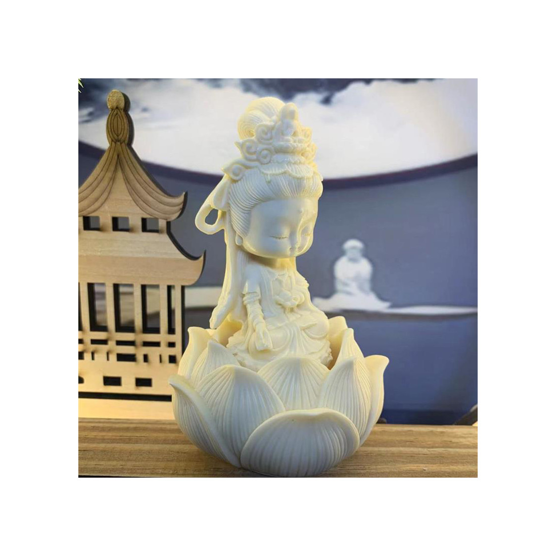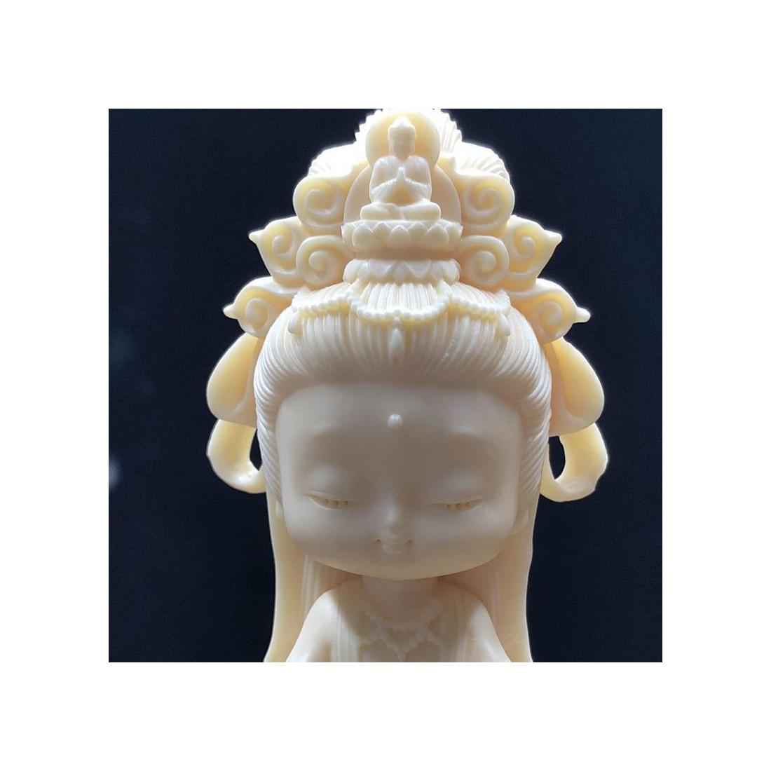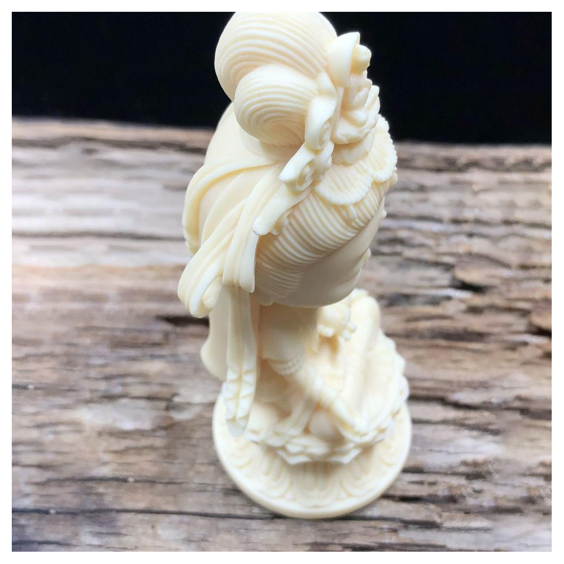 Богиня Ґуаньїнь зі свічником у формі лотоса — статуетка з горіха