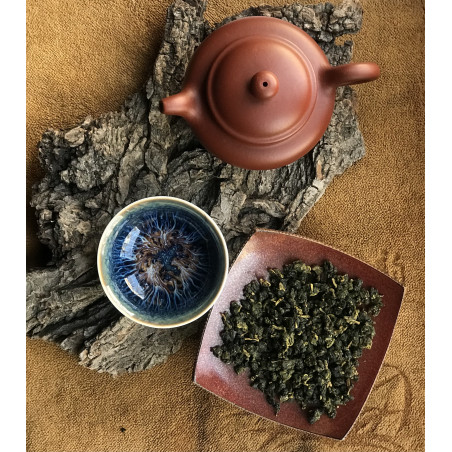 Високогірний улун, осінній збір, слабка обсмажування листя. Трав'янистий аромат чаїнки з нотами злаків, а смак настою трав'янистість змішана з цукерковою насолодою. Чай поступово насичується і розкривається, але все чаювання залишається чистим і прозорим, що обпалює, як холодне гірське повітря.