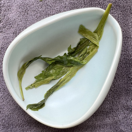 Чаїнки у чаю особливі - два листочки обіймають нирку, формою плоскі і витягнуті, довгі, ворсинки приховані. Про нього ще кажуть: «Чаїнки не розпадаються, не стовбурчаться, не загинаються». Насичено зеленого кольору, блискучі. Ніжно пахне орхідеєю, аромат легкий та свіжий. Смак чистий та насичений, із насолодою, зі своїм унікальним відтінком. Настій зелений, прозорий та блискучий. Чайне дно - світло-зелене, яскраве листя, досить пухкі, але ніжні. Порівняно зі звичайним чаєм тих місць, витримує більшу кількість заварок: «перше заварювання – глибокий аромат, друге заварювання – насичений смак, третє, четверте заварювання – ніжний аромат залишається». Йдеться про традиційне заварювання чаю у склянках. Коли у середньому чай заливають тричі. Зазвичай відзначають, що чай має тонкі квіткові пахощі орхідеї.